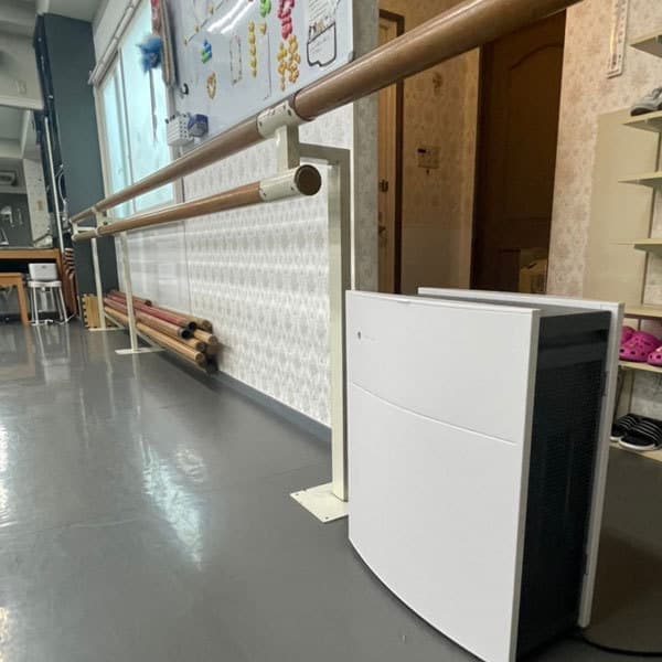 スタジオ入口に置いてある75畳の広さに対応した大きな空気清浄機で、安心してレッスンしていただけます。