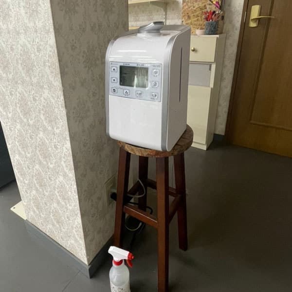 噴霧した霧はすぐに見えなくなってしまいますが、成分は落下しないので遠くまで風に乗ってお部屋の隅々まで行き渡って空気を除菌します。